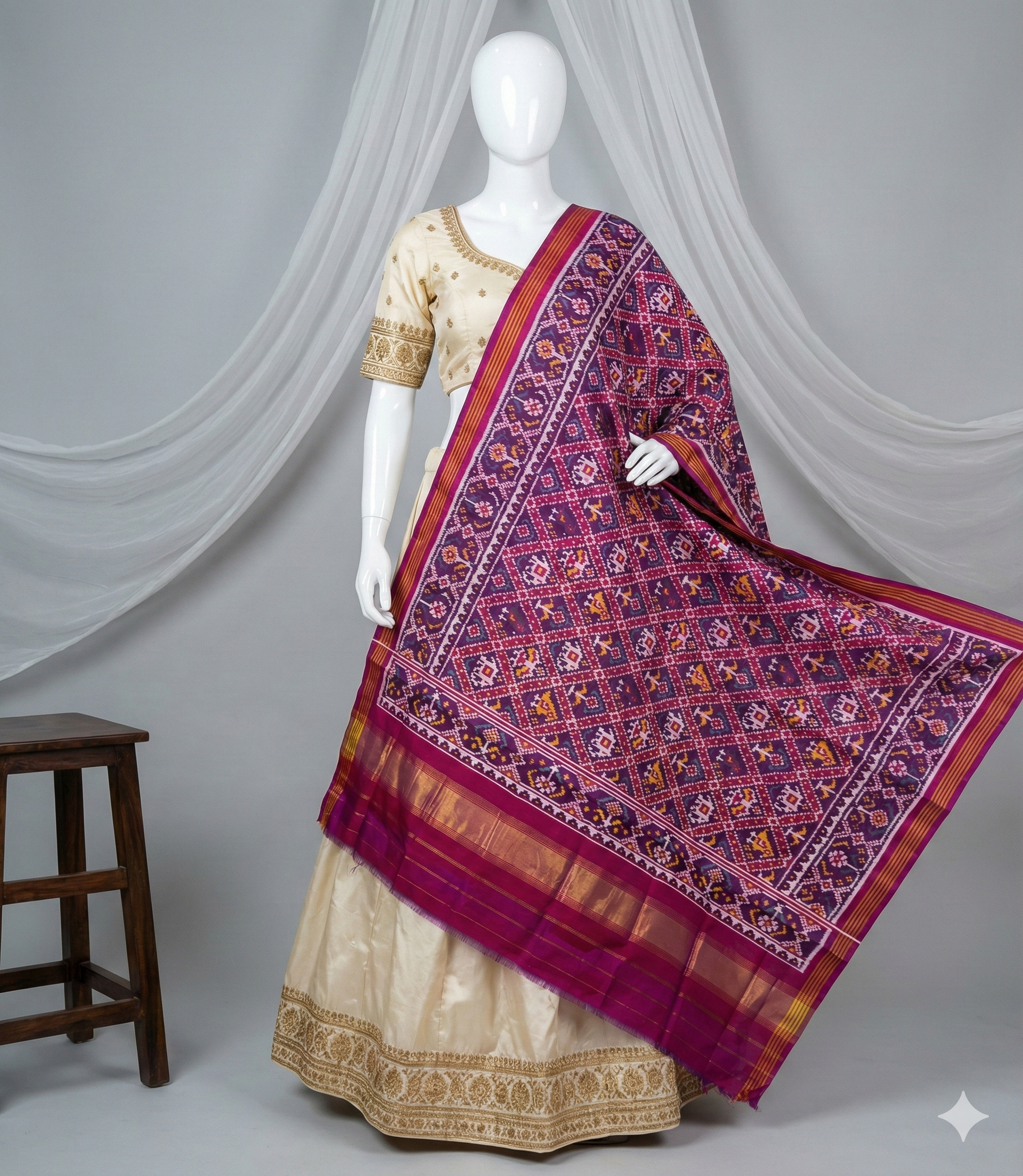 Magenta Nari Kunj Single Ikkat Patola Dupatta