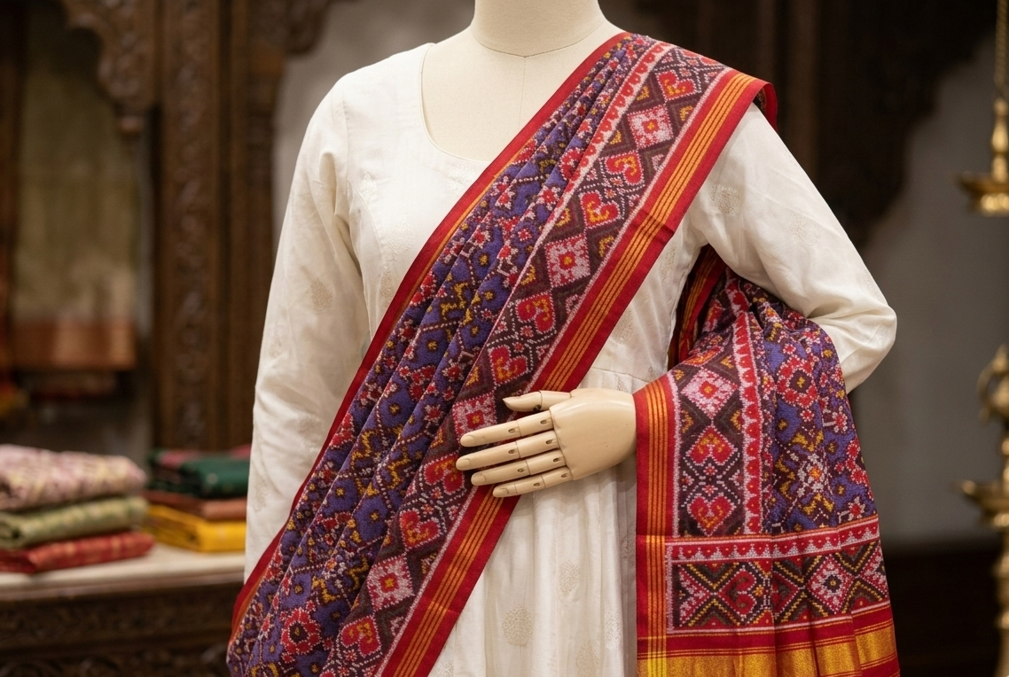Patola art is not just a textile; it is a legendary heritage that dates back to the 12th century. It flourished under the patronage of King Kumarpal of the Solanki dynasty, who invited 700 weaver families to Patan to ensure he wore a fresh, sacred "Patolu" for every temple visit. Often called the "Queen of Silks," this craft has traveled from the royal courts of Gujarat to the wardrobes of the world, remaining a symbol of ultimate status and prestige.