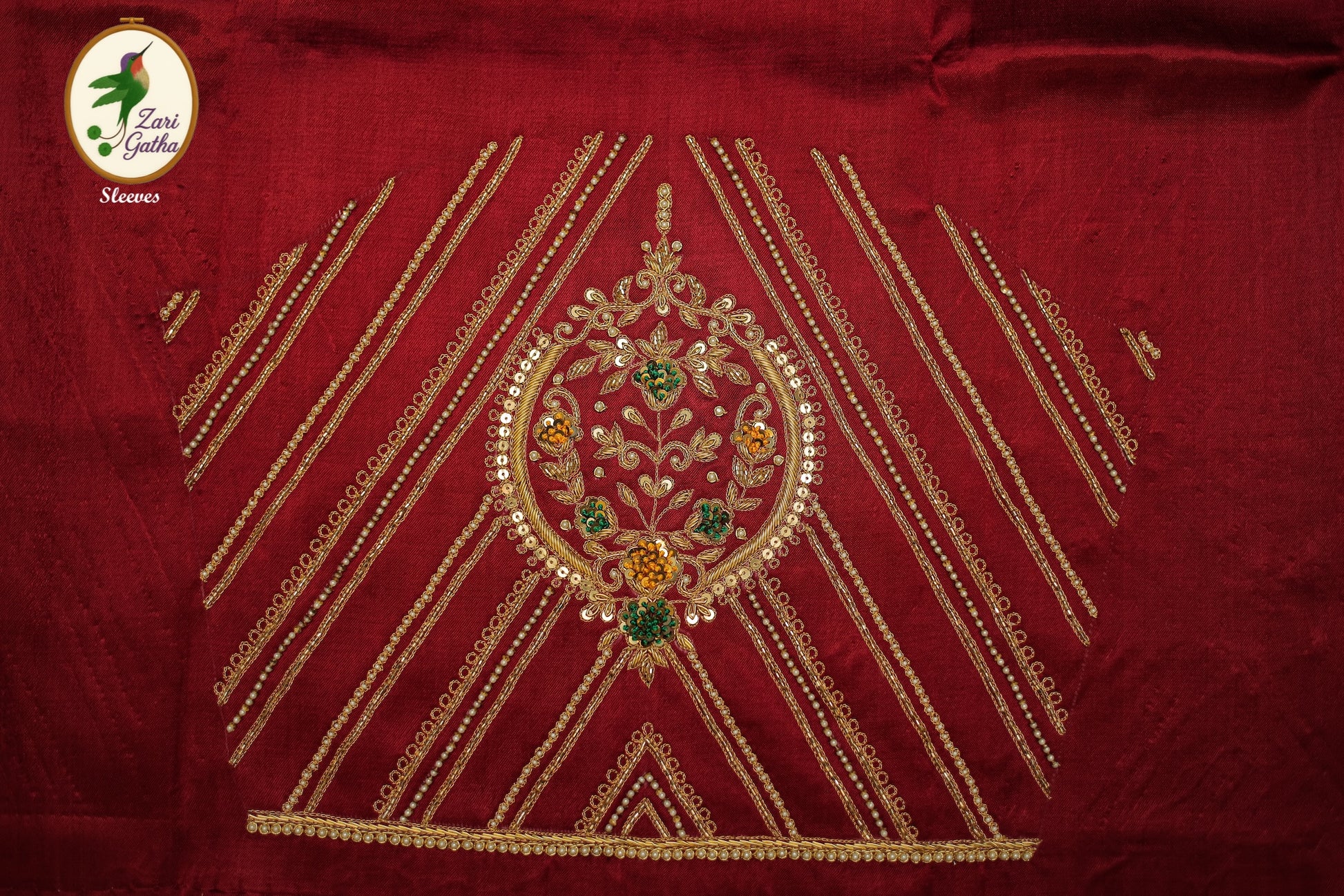 • Handcrafted embroidery with golden zari and beads