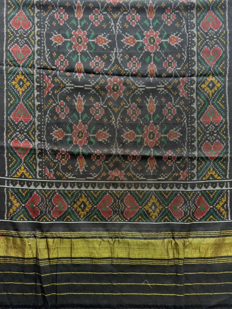 A striking blend of tradition and elegance, this chhabdi bhat patola heritage shawl features intricate floral motifs framed within delicate vine patterns. The beautifully woven heart-inspired border in rich red, green, and yellow tones adds a vibrant cultural touch. Finished with a subtle golden striped pallu, this shawl exudes timeless charm and sophistication. Perfect for festive gatherings, cultural celebrations, or elevating your evening ethnic ensemble with graceful warmth.