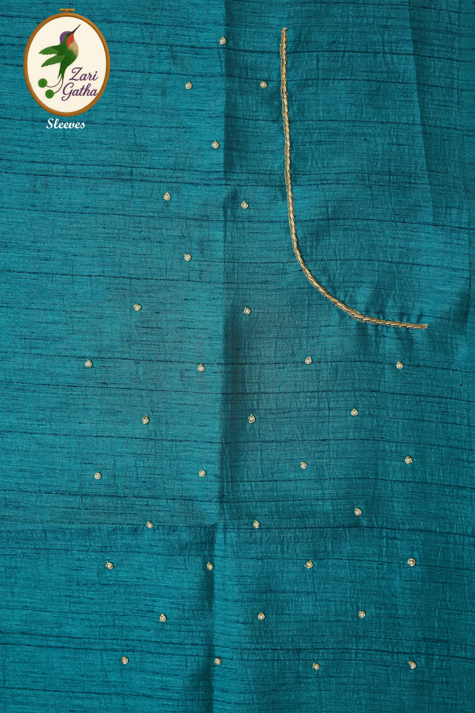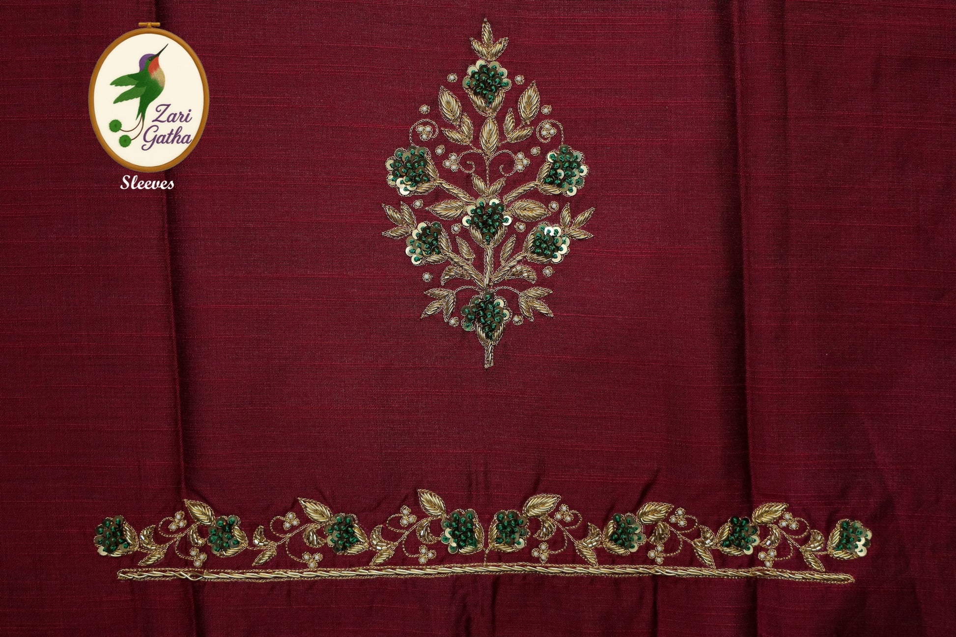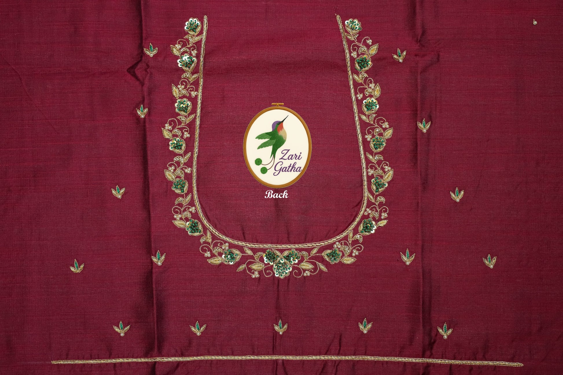 - Handcrafted embroidery with golden zari and beads