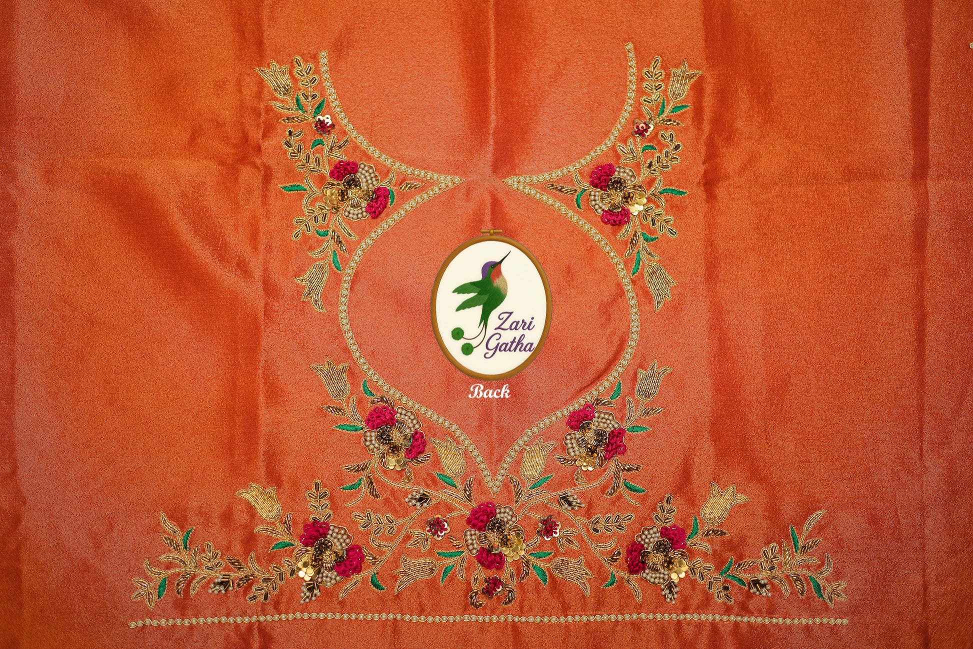 • Handcrafted embroidery with golden zari and beads