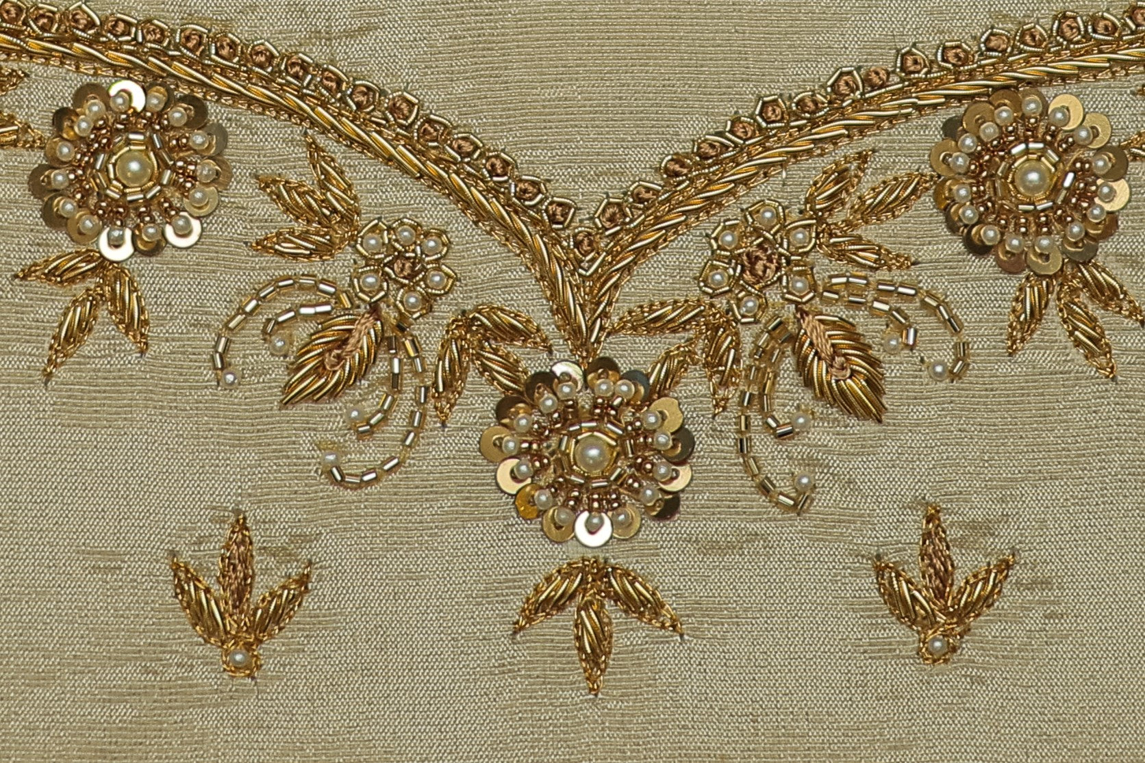 Aari work blouse design with bridal hand embroidery and zardosi work, unique blouse designs for wedding wear and traditional attire of India.