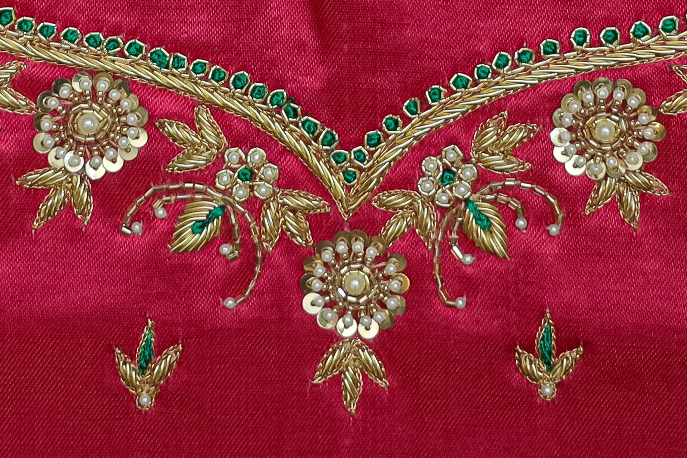 Aari work blouse design with bridal hand embroidery and zardosi work, unique blouse designs for wedding wear and traditional attire of India.