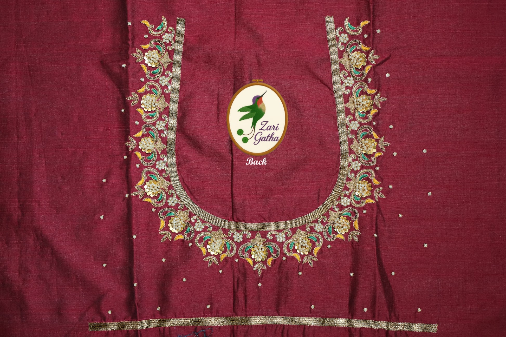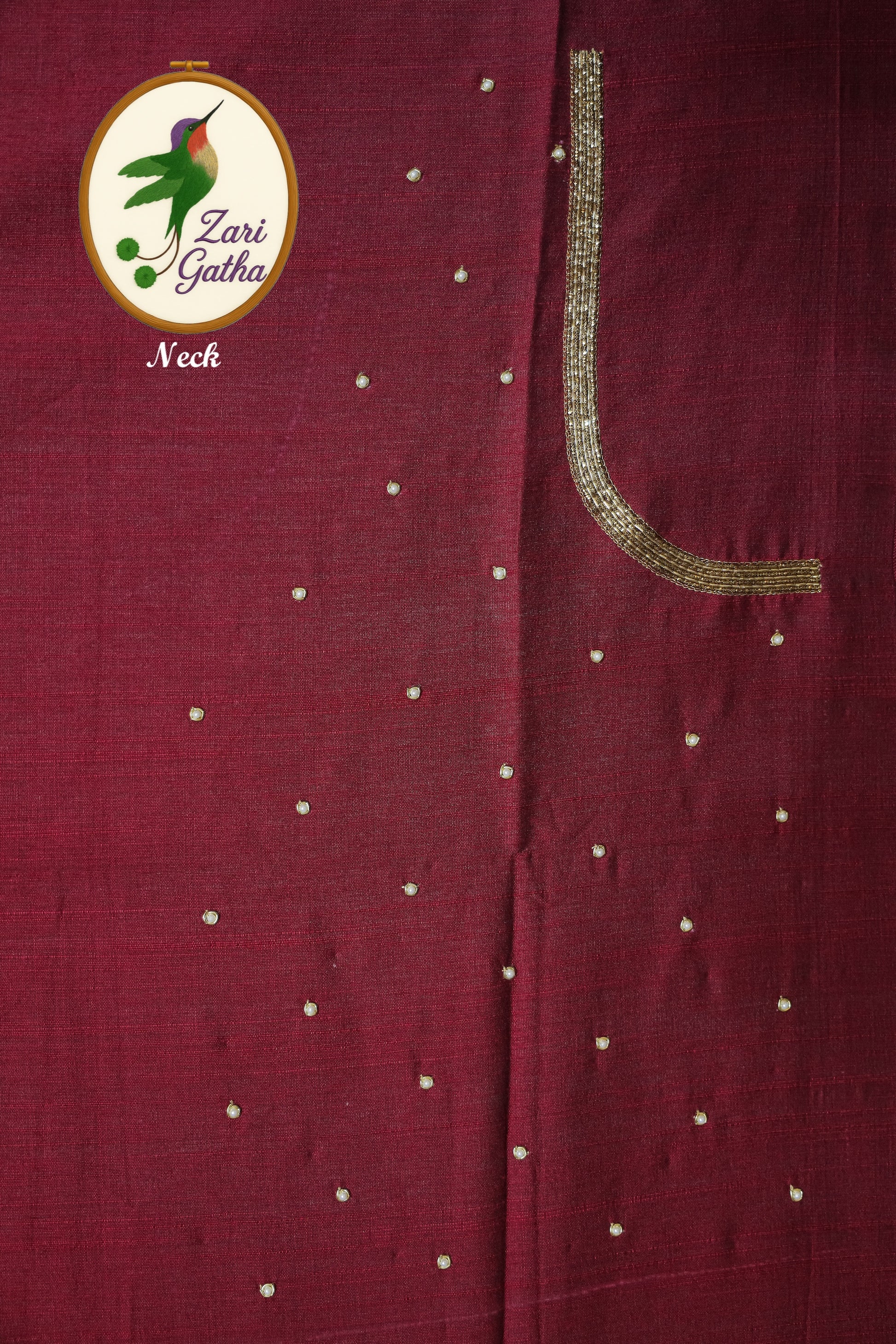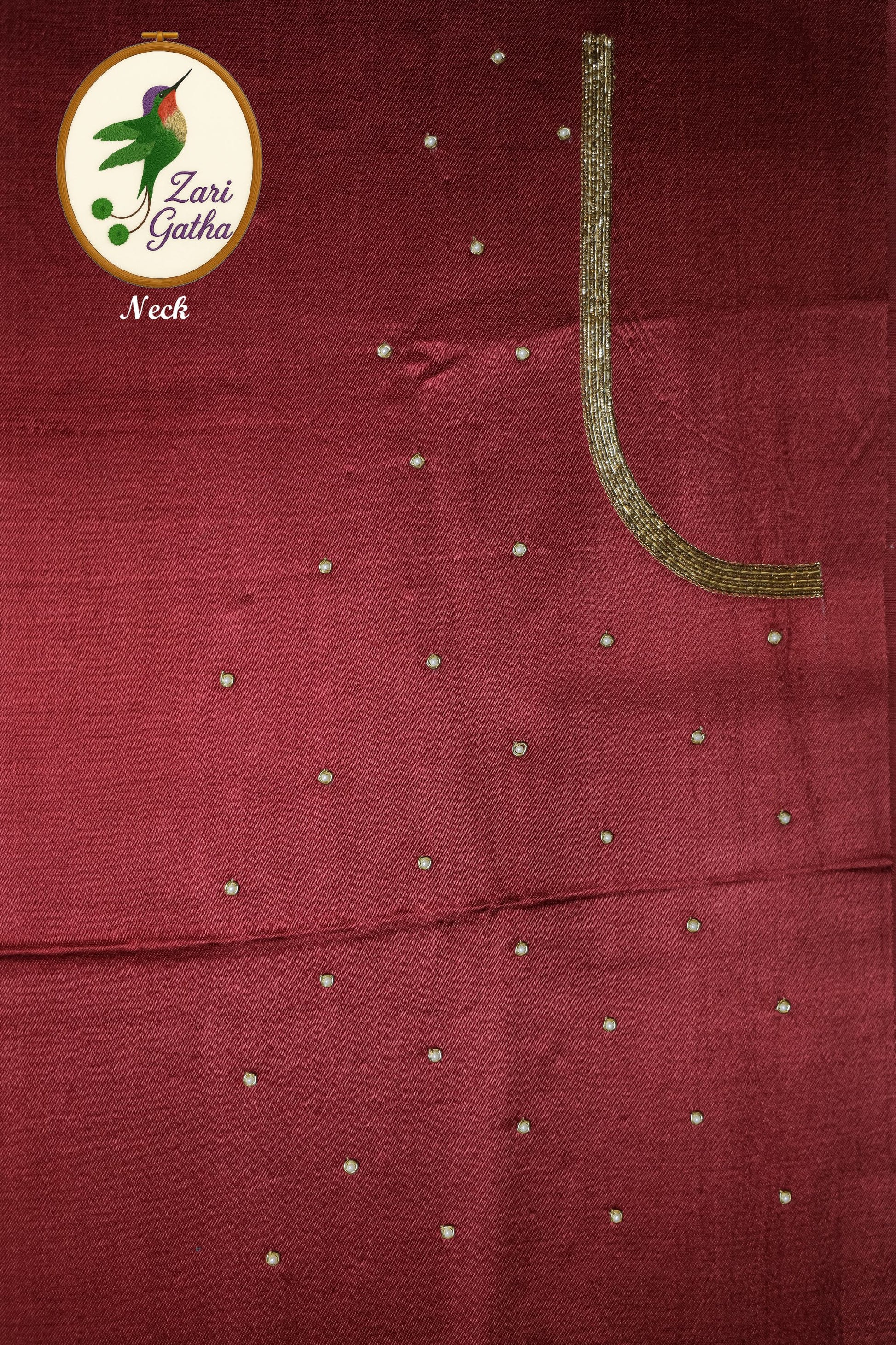 - Handcrafted embroidery with golden zari and beads