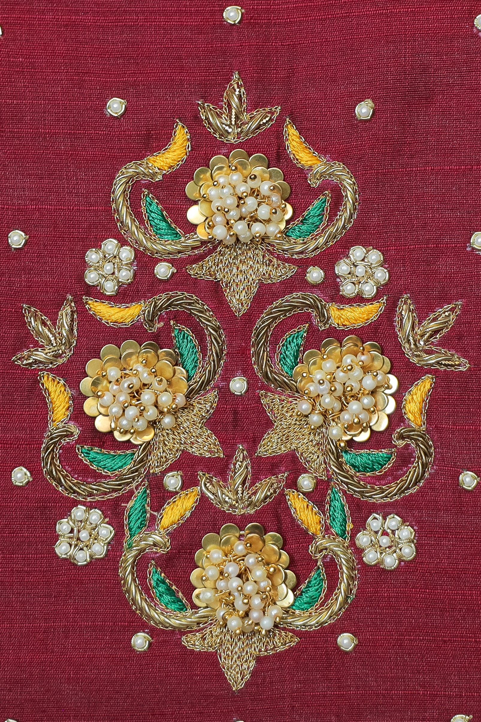 - Elegant floral & leaf motifs with pearl embellishments