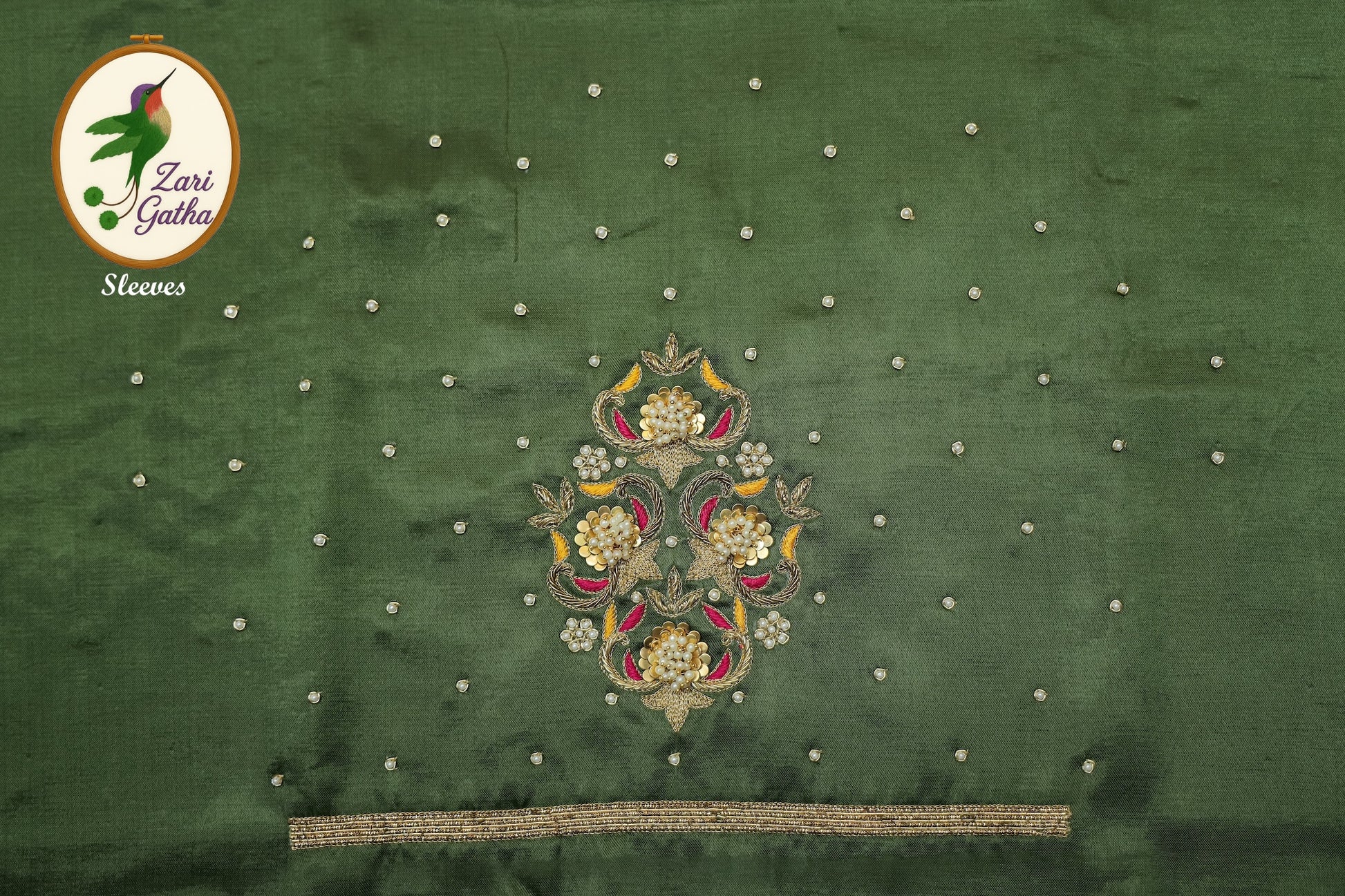 • Handcrafted embroidery with golden zari and beads