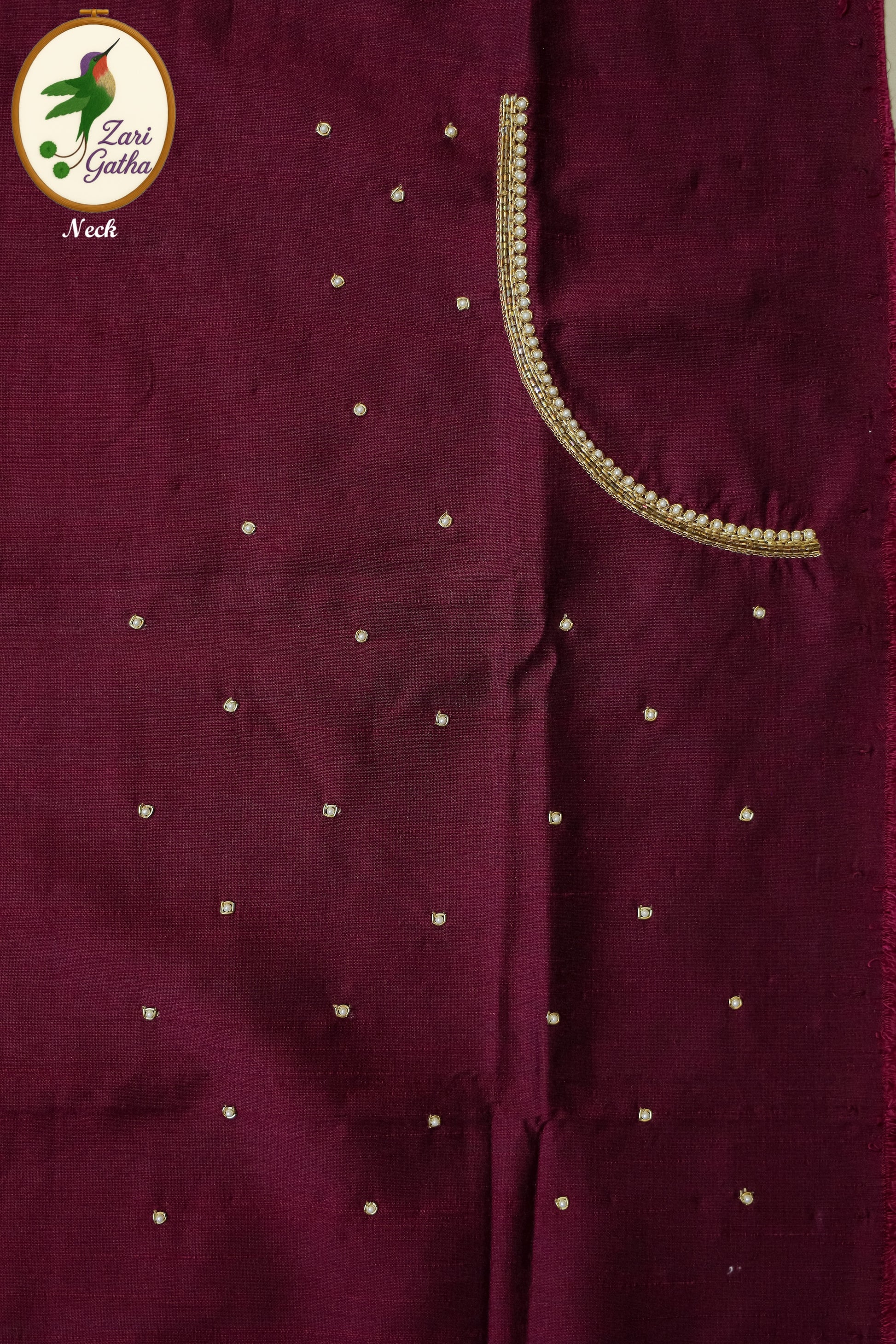 Royal Silk Unstitched Blouse with Front Pleats and Embroidery with U-Neck