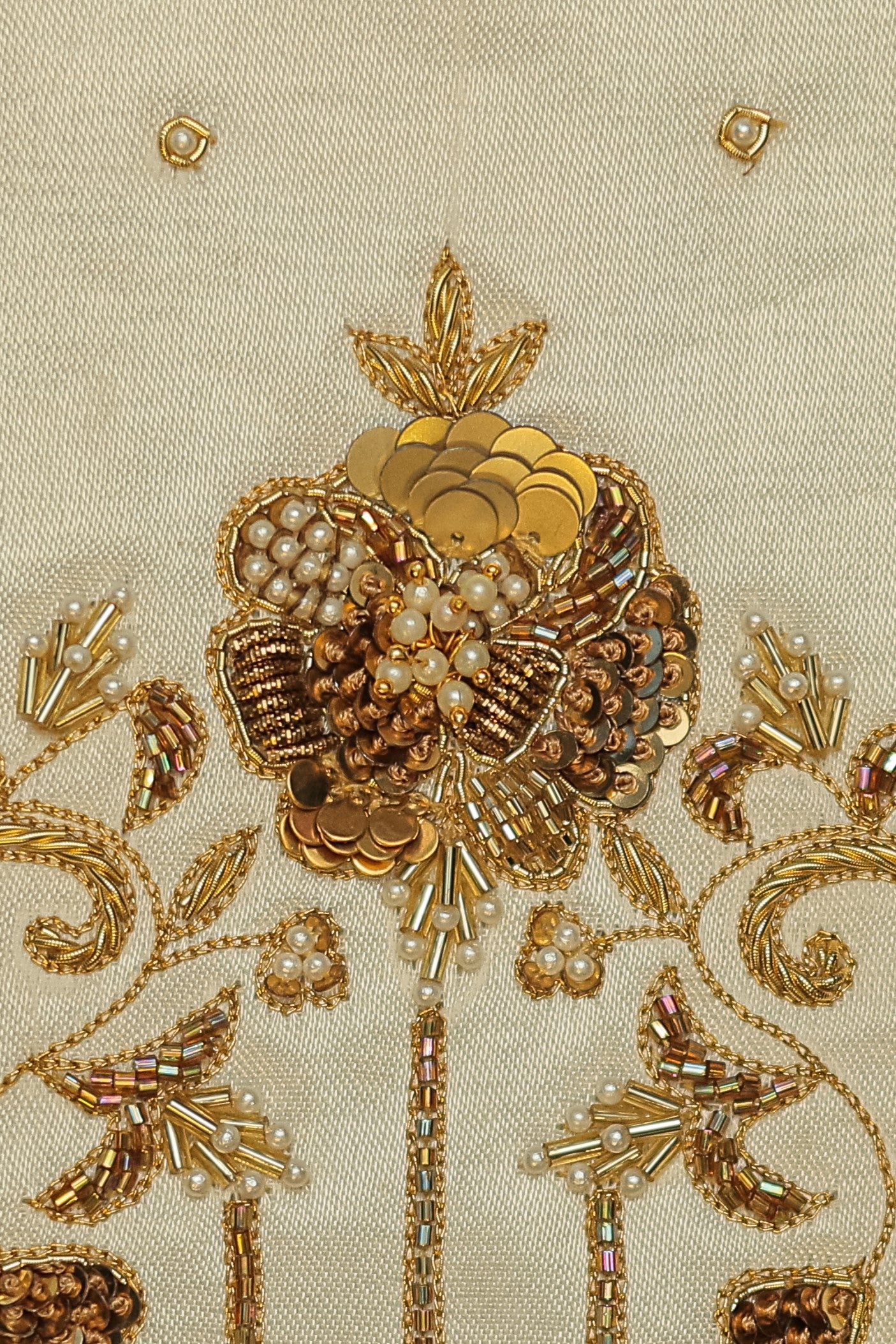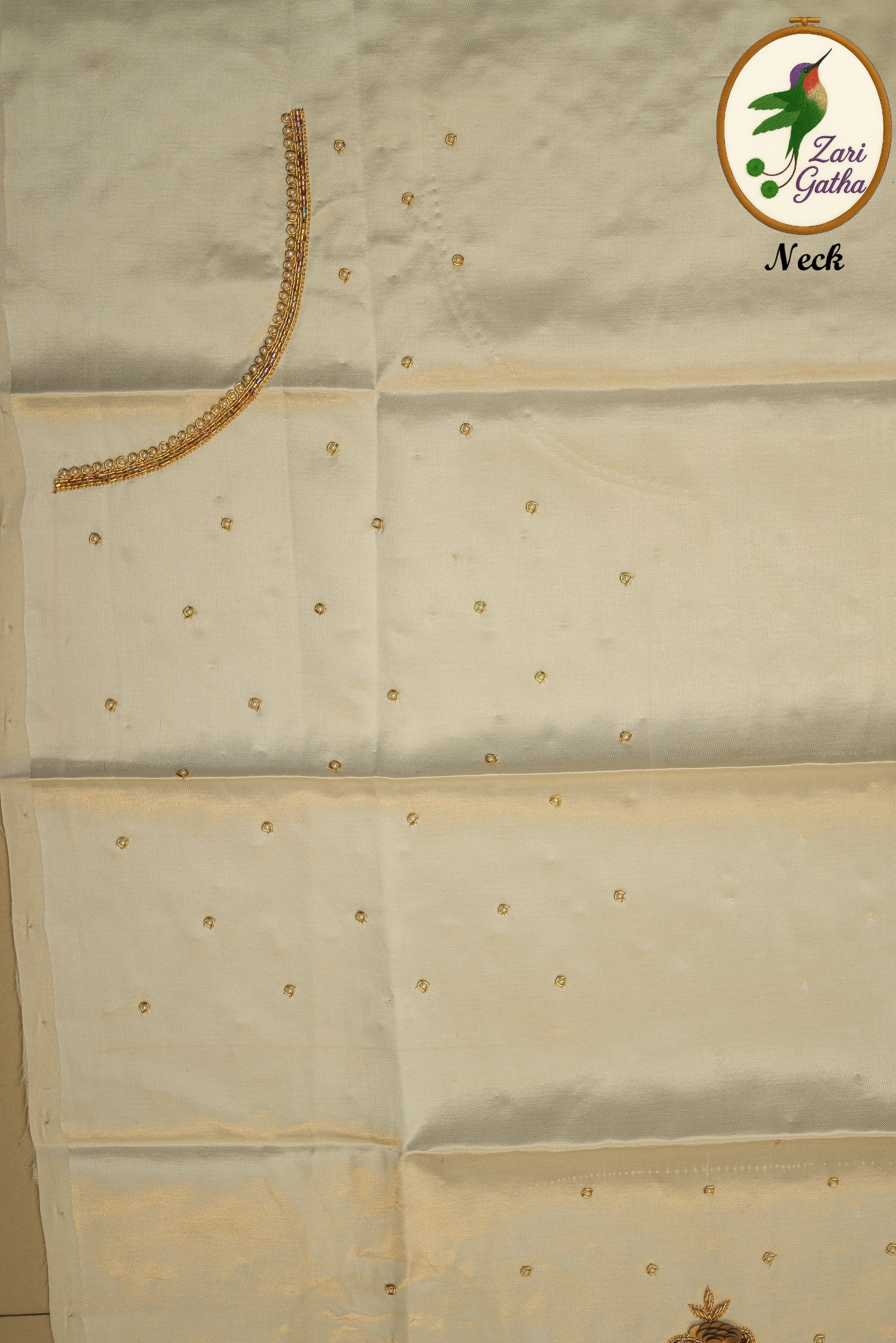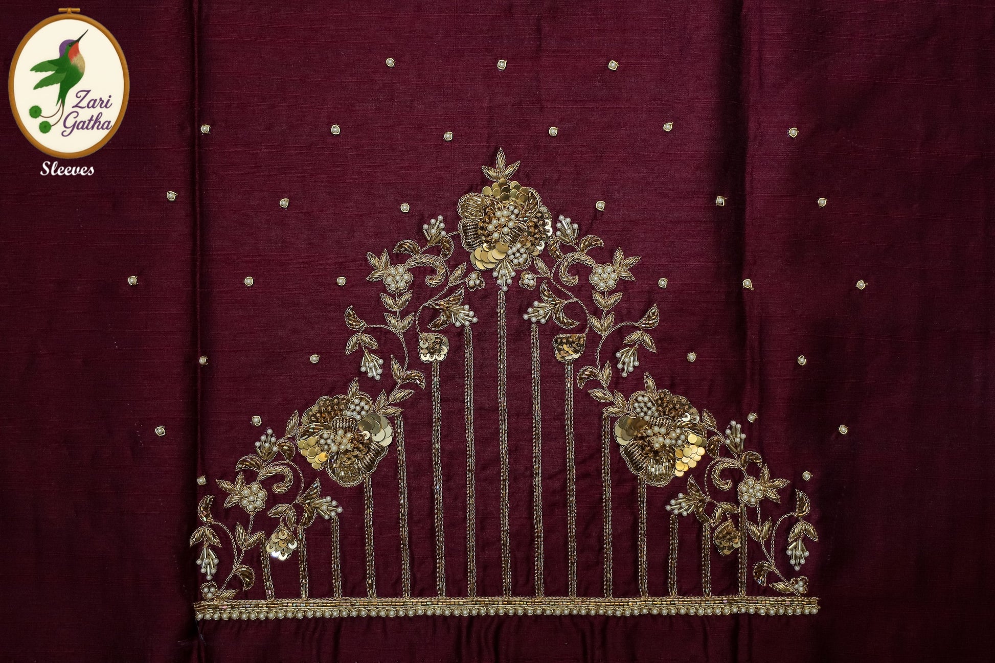 Elevate your ethnic wardrobe with this Royal Silk Blouse, featuring intricate front pleats and delicate embroidery that enhance its sophisticated design. The U-neckline offers a flattering fit, balancing elegance with comfort. Crafted from premium silk, this blouse adds a rich texture and subtle sheen, ideal for special occasions or festive wear. Its tailored structure complements traditional sarees beautifully, ensuring a regal and refined appearance.