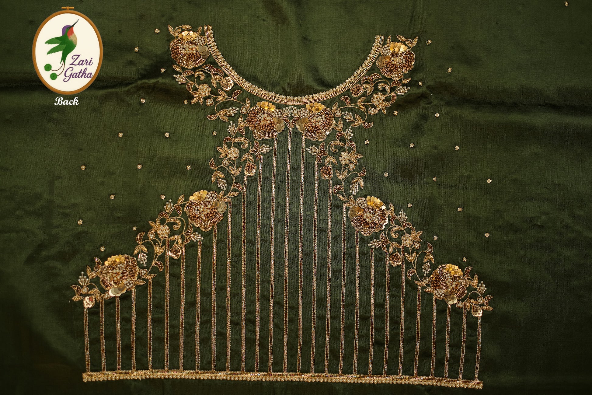 Bridal blouse with aari work blouse hand designs and blouse embroidery, designer blouse style for lehenga and traditional party wear dress for ladies.