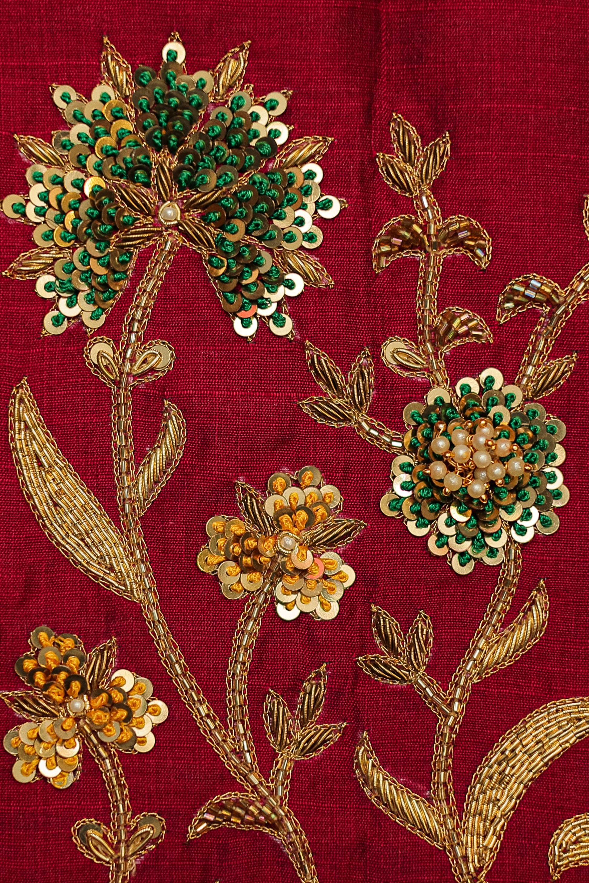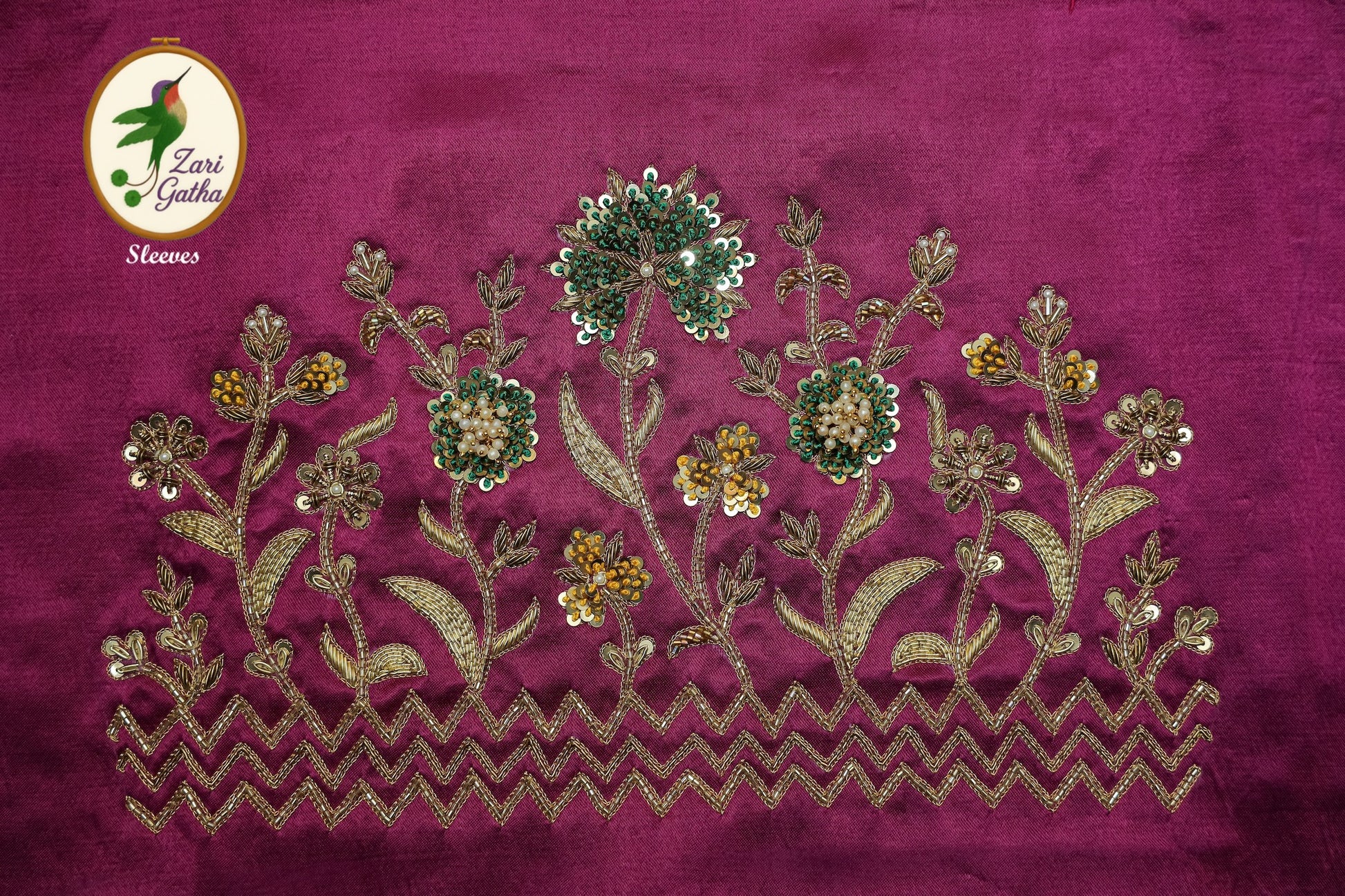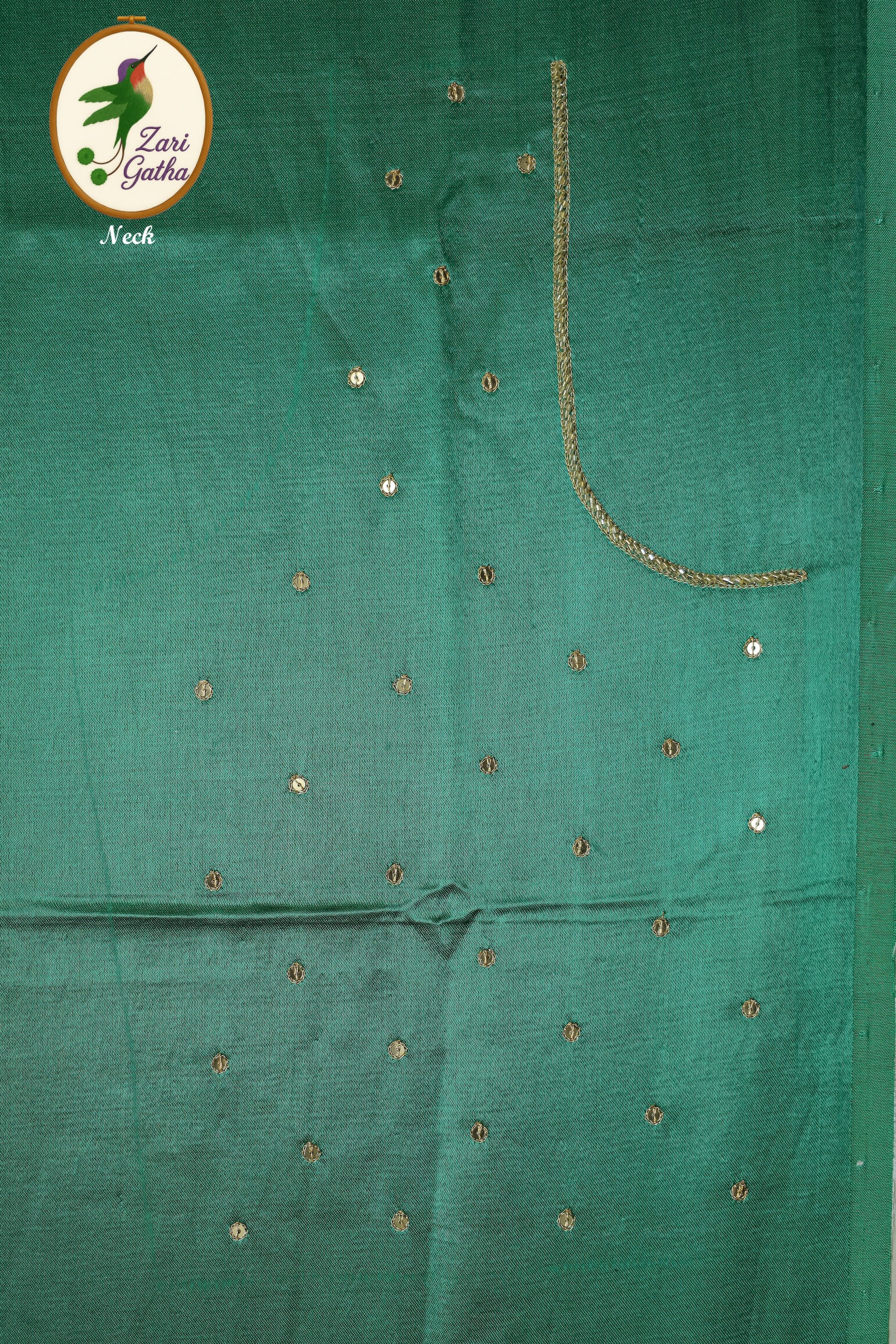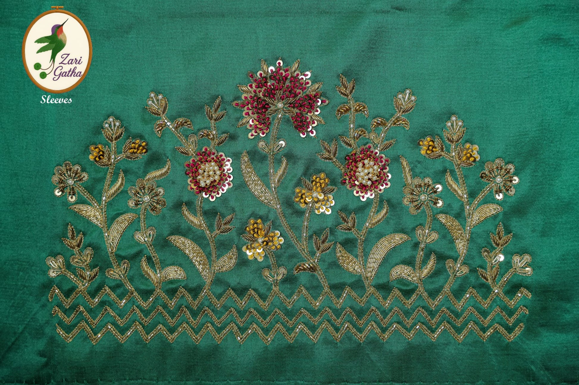 - Handcrafted embroidery with golden zari and beads