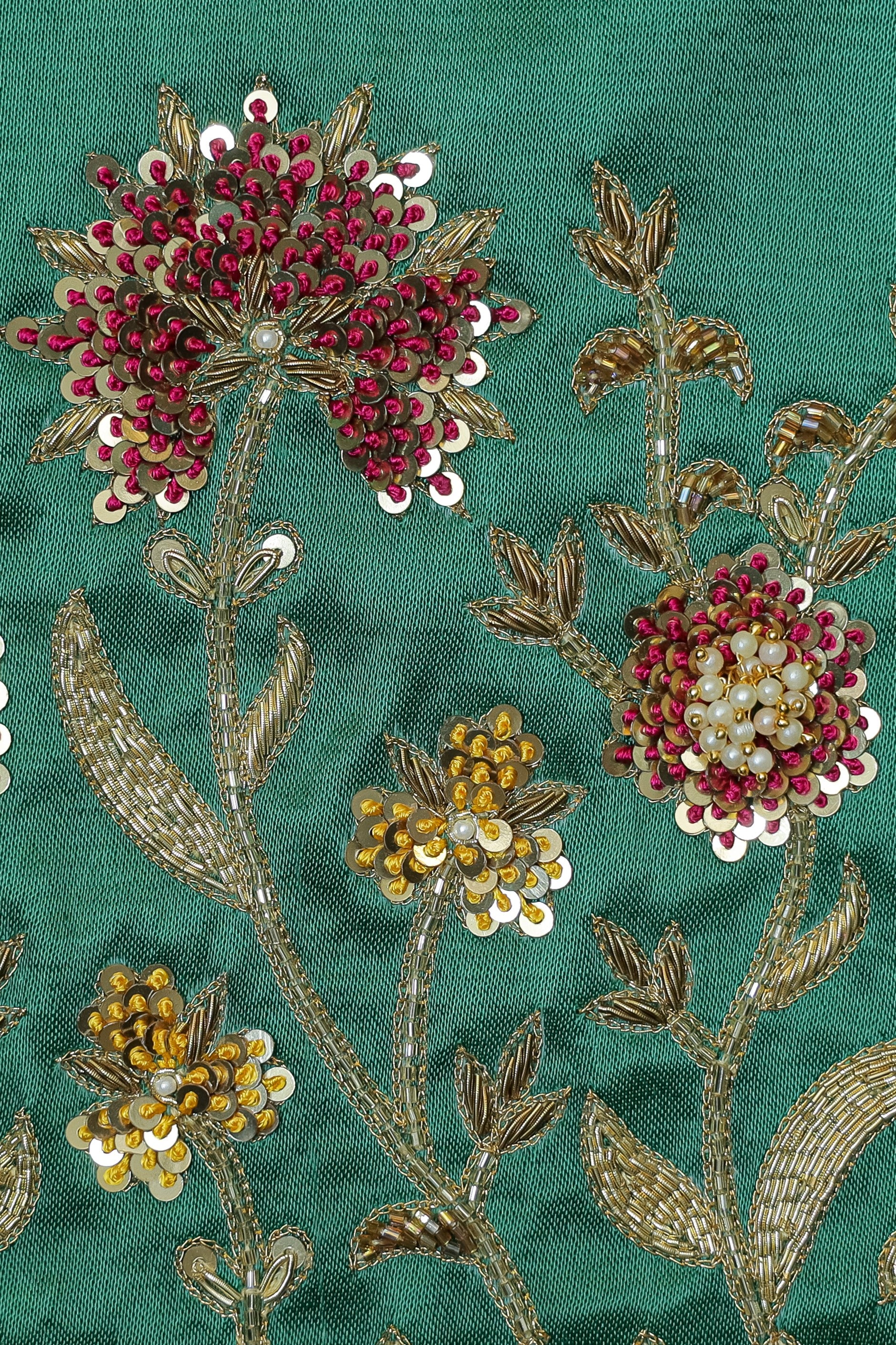 - Elegant floral & leaf motifs with pearl embellishments