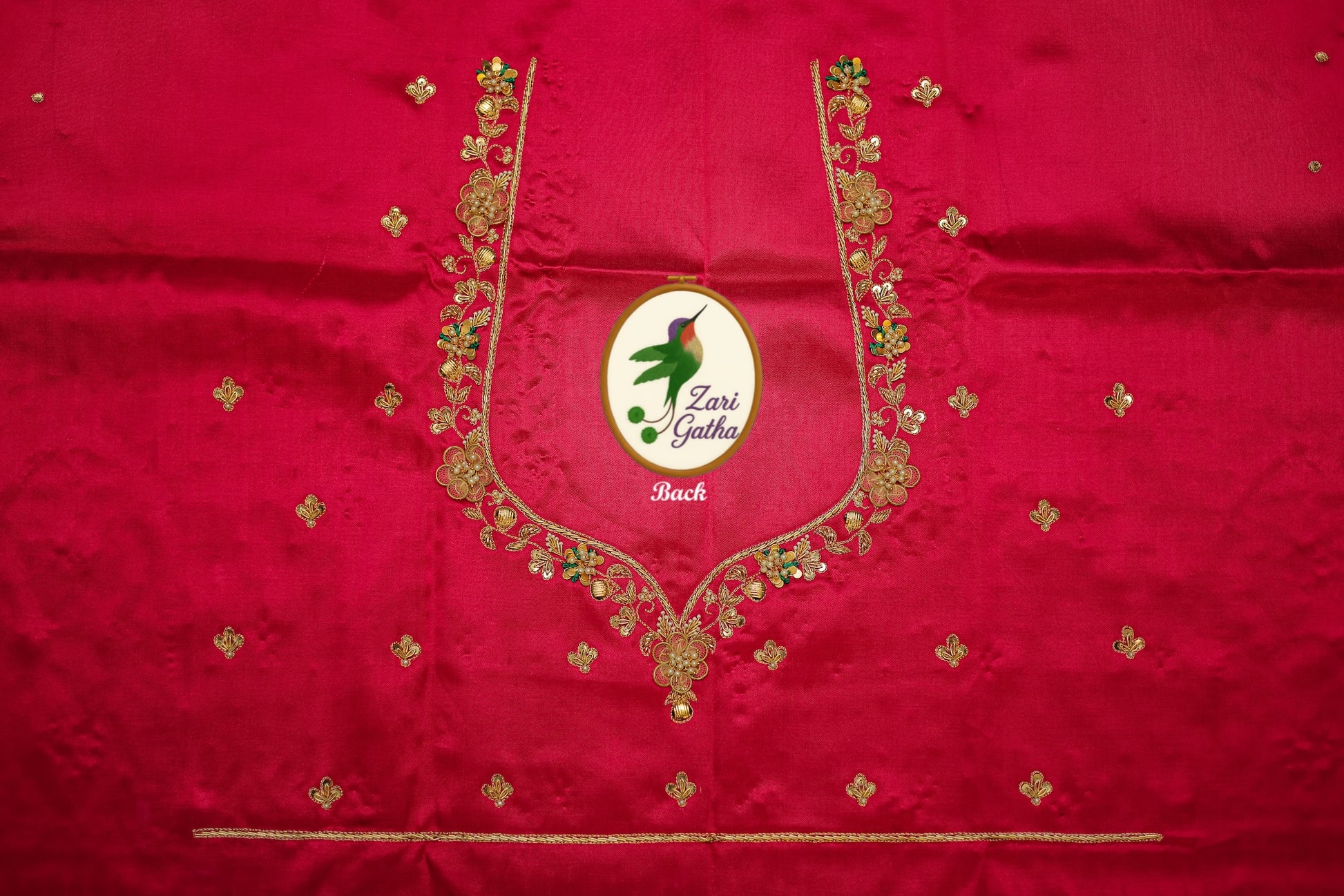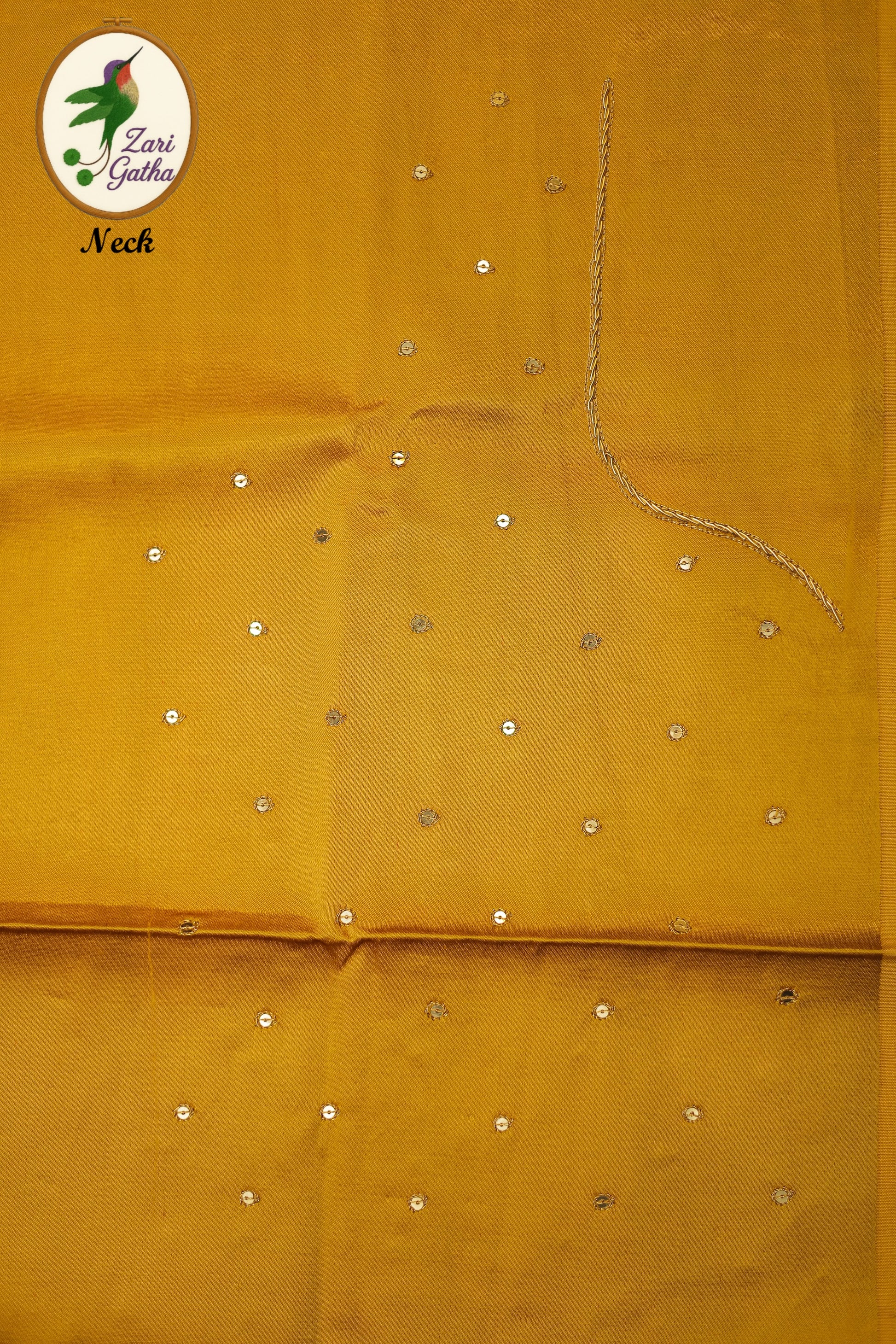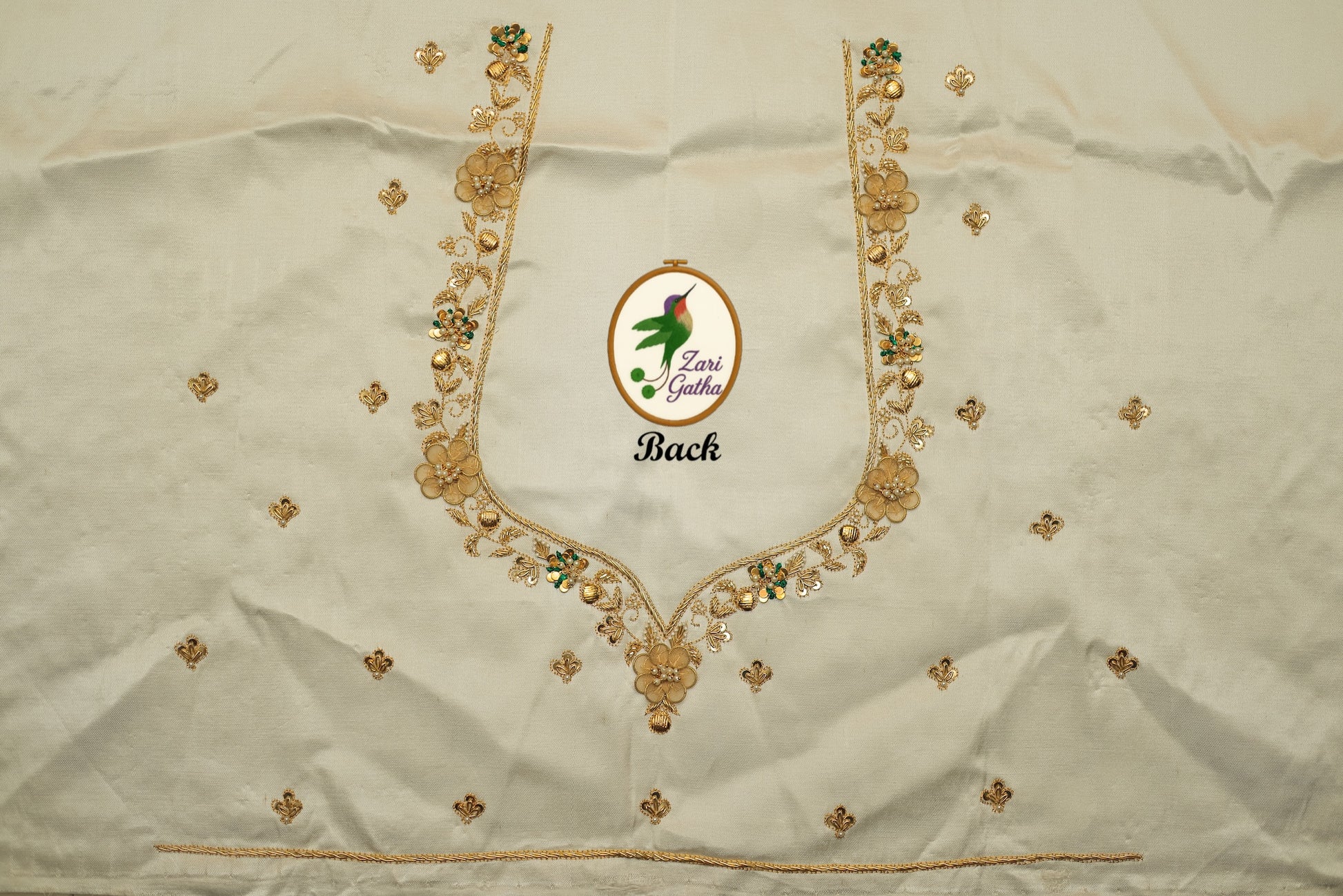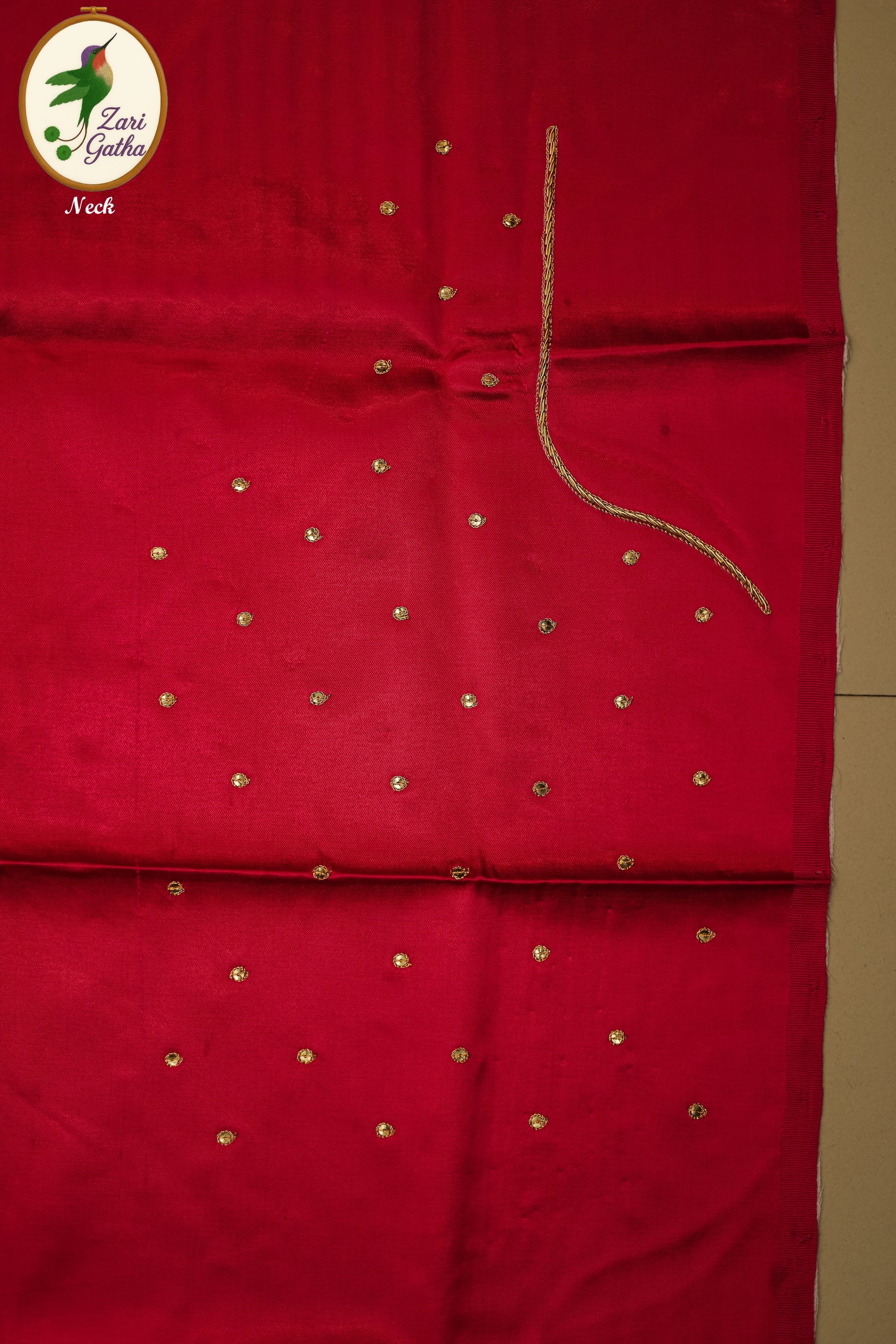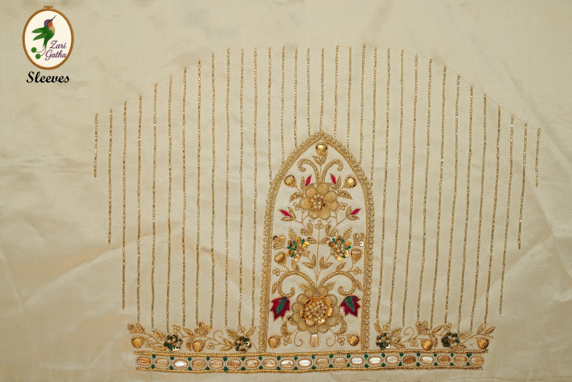 - Handcrafted embroidery with golden zari and beads