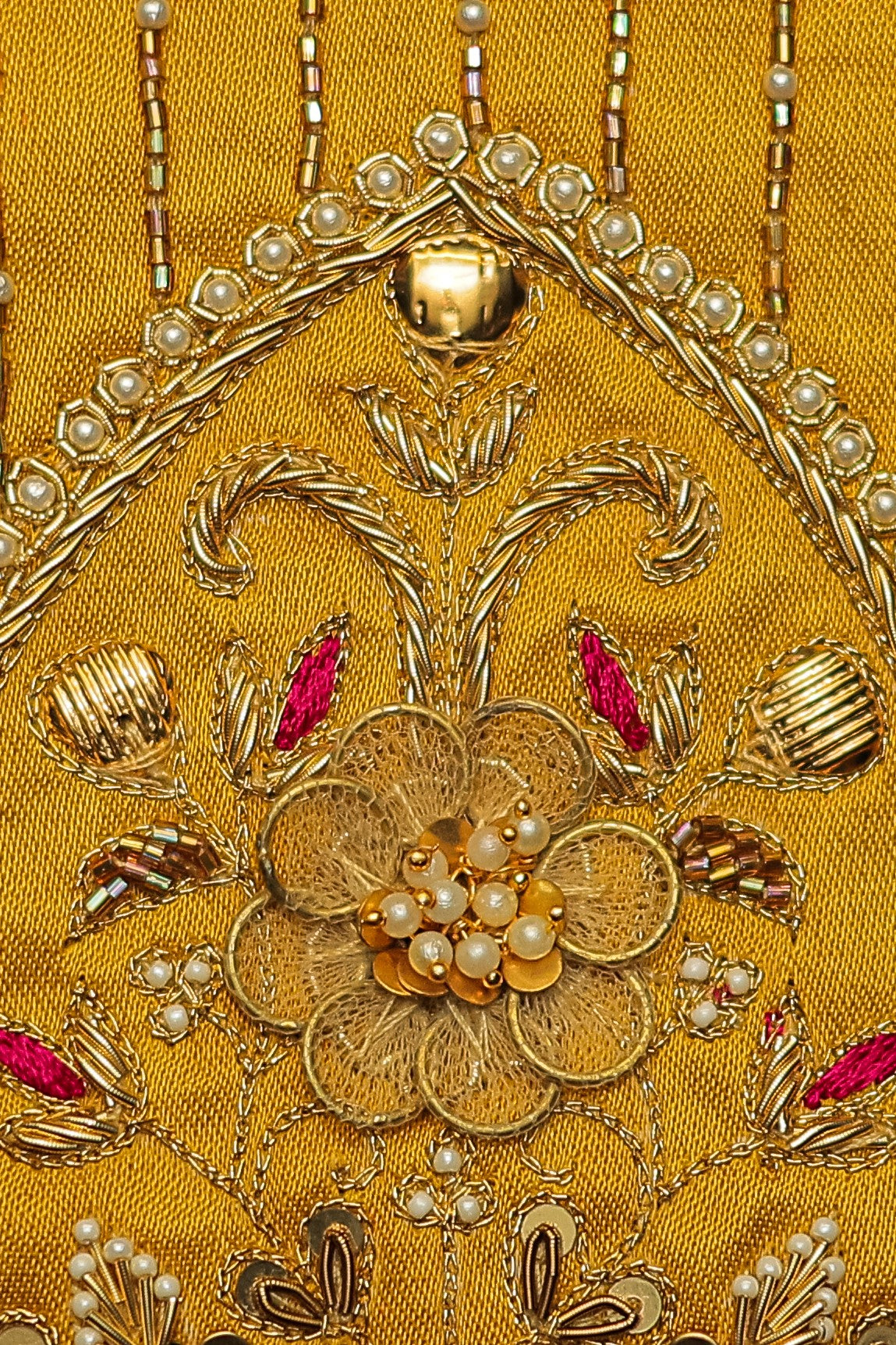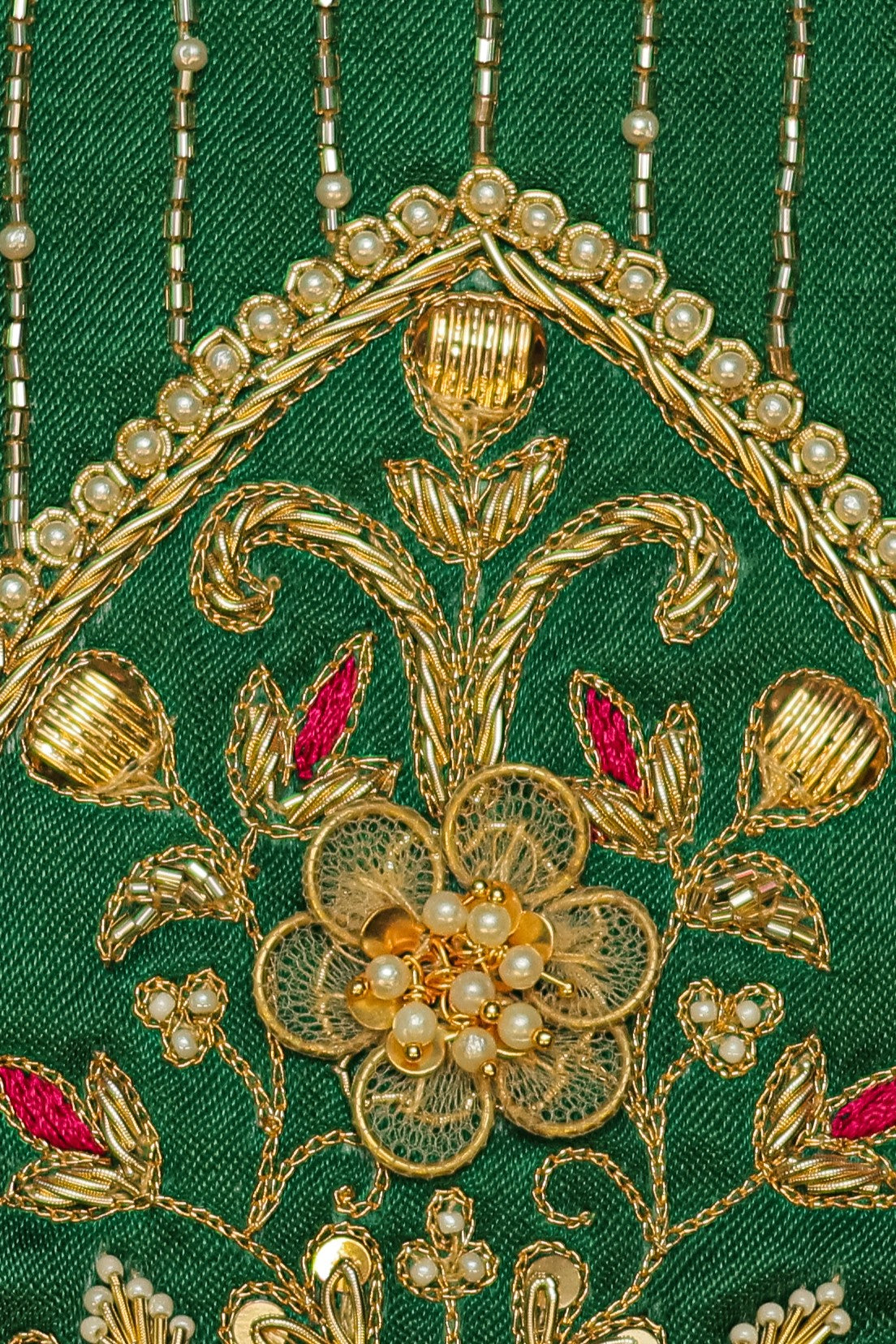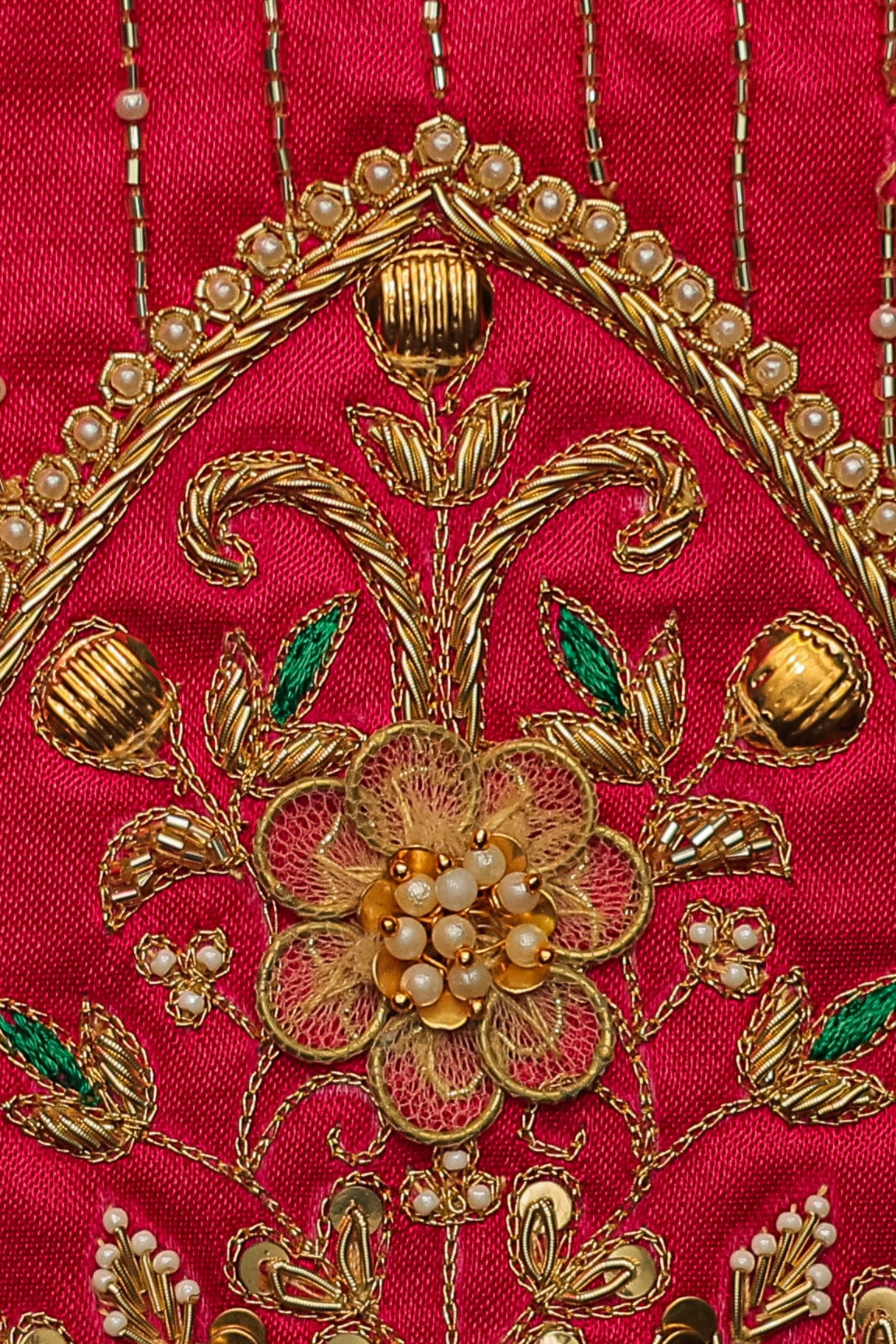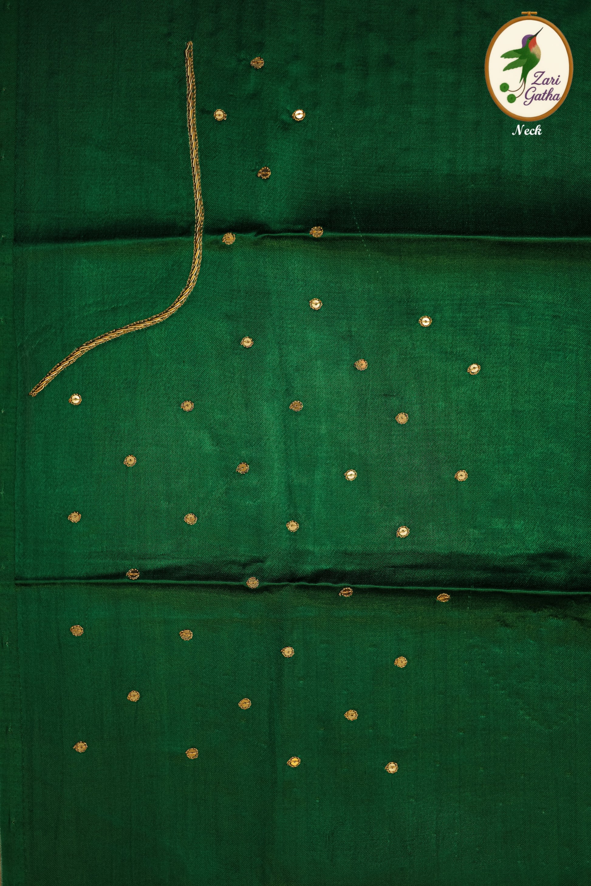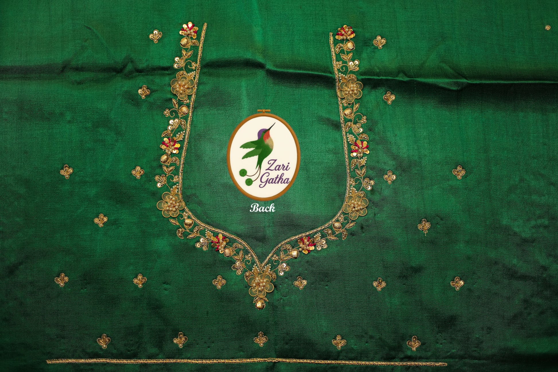 - Handcrafted embroidery with golden zari and beads
