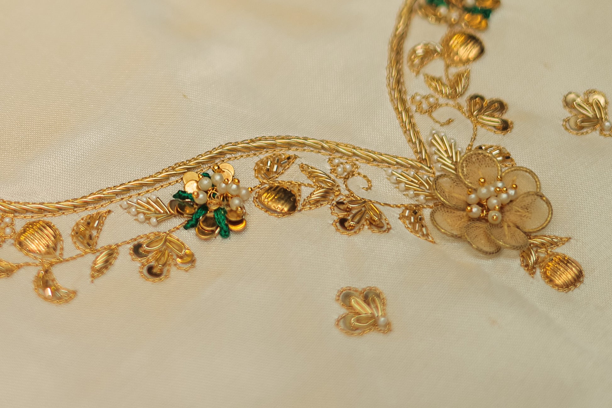 - Elegant floral & leaf motifs with pearl embellishments