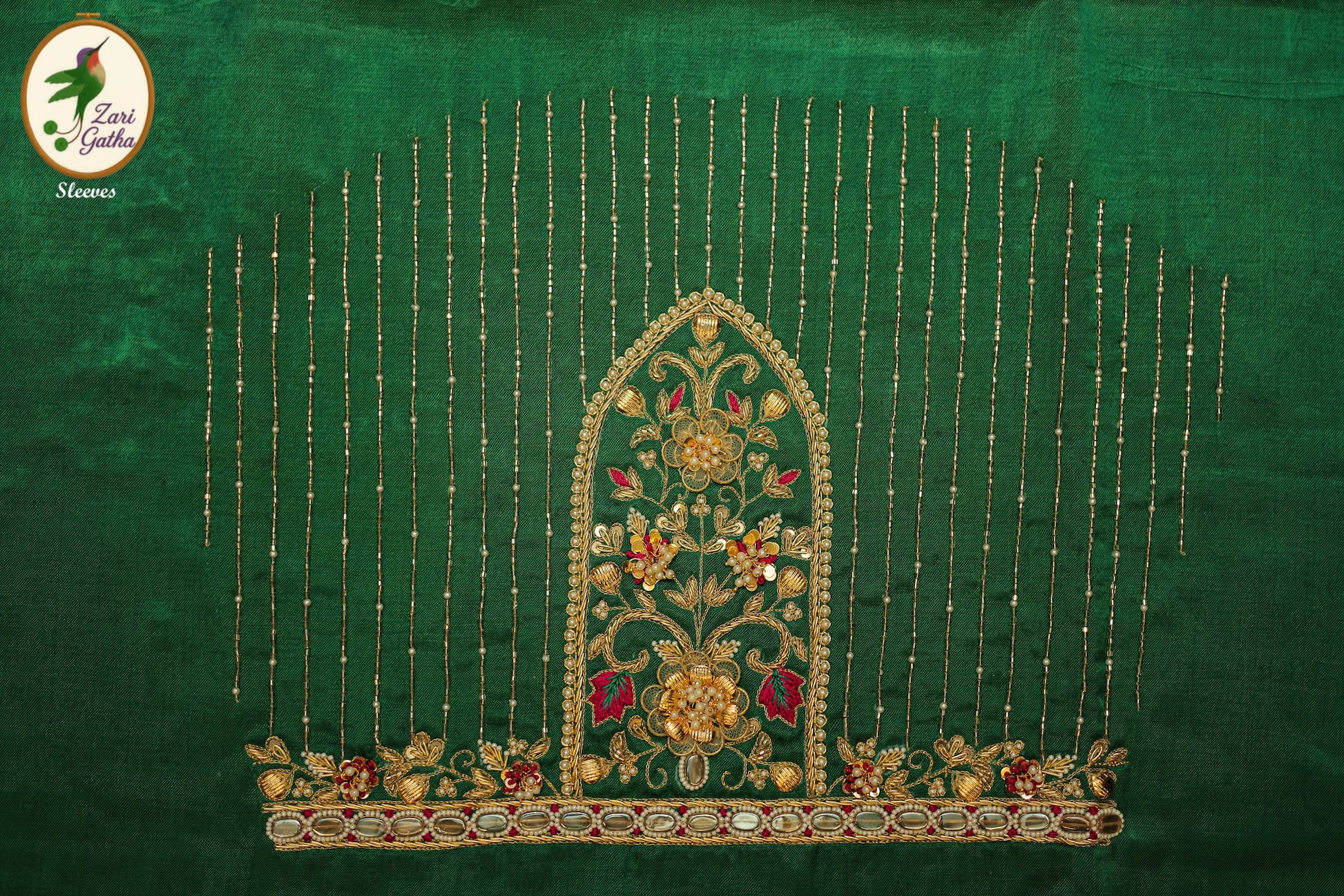 Aari work blouse design with zardosi embroidery and blouse embroidery, latest traditional blouse designs perfect for wedding wear and festive occasions.