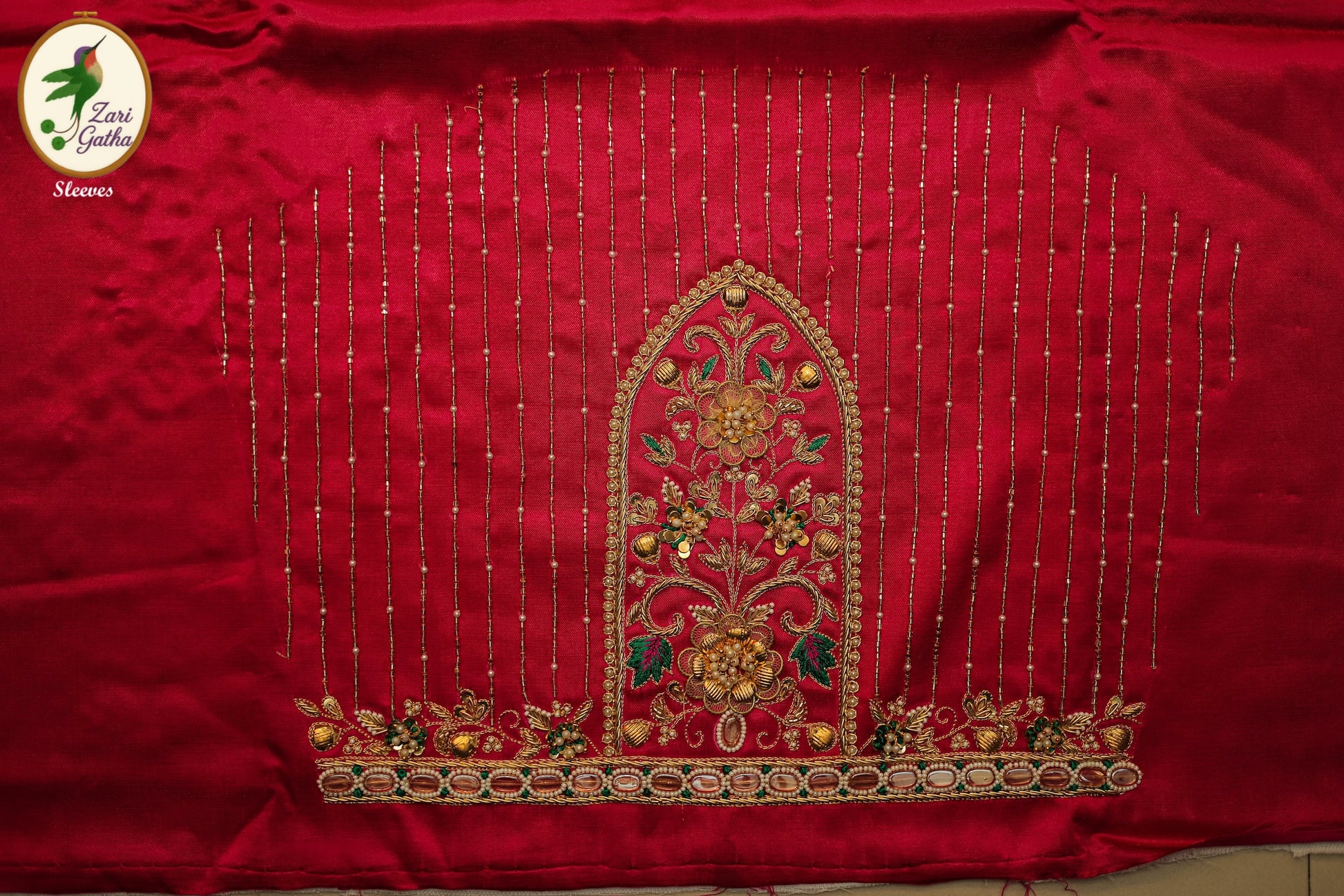 Aari work blouse design with zardosi embroidery and blouse embroidery, latest traditional blouse designs perfect for wedding wear and festive occasions.